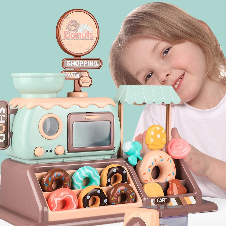 Crianças donut loja de sorvete de doces venda de supermercado homem e menina forno cozinha caminhão de restaurante brinquedo