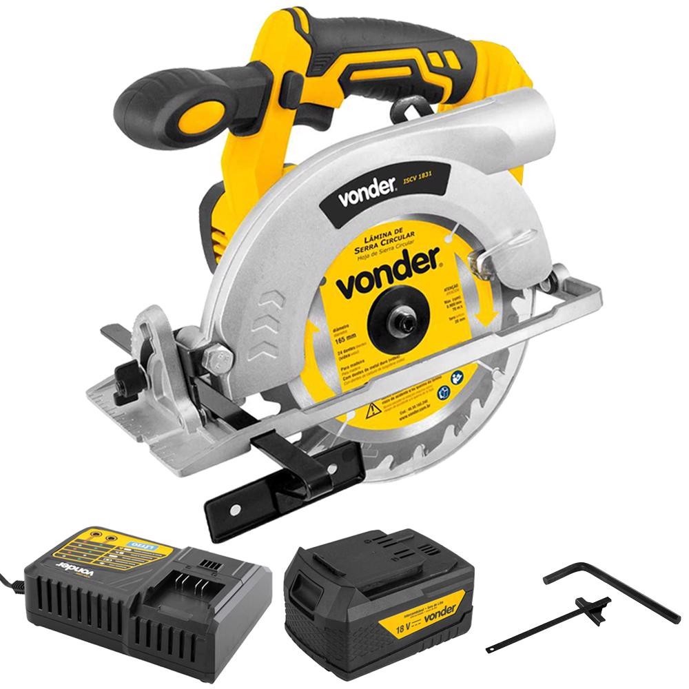Serra Circular 6.1/2 POL à Bateria 18v Com Bateria e Carregador VONDER - Bivolt