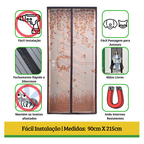 Tela Mosquiteira Magnética Porta 90x215cm Marrom FortMesh