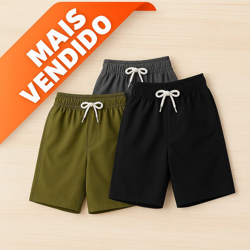 Kit 3 Short Bermudas Masculinas Mauricinho Tactel Grosso | Secagem Rápida Praia Piscina Academia Verão