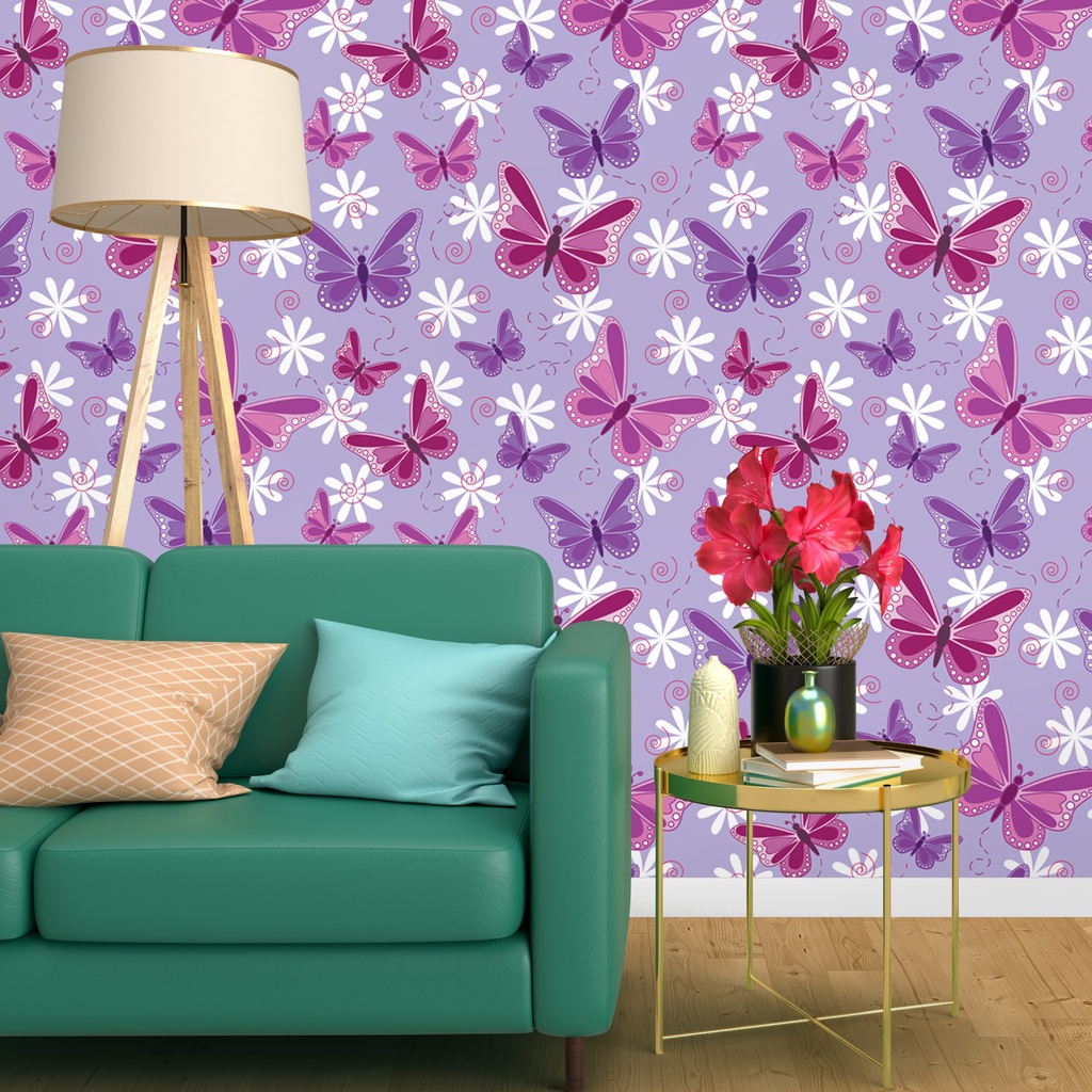 Papel De Parede Lavável Casual Borboletas Fundo Roxo Adesivo Decoração Sala Quarto - Pro Decor