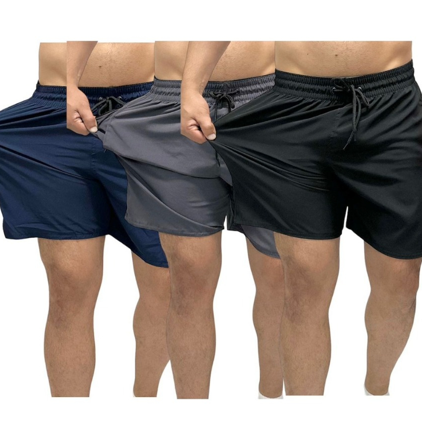 Kit 3 Short Tactel Masculino 3 Bolsos Elástico Cordão Liso Academia Bermuda Calção Musculação Calção
