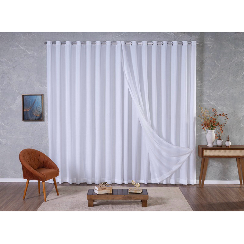 Cortina Voil Gaze de Linho Com Forro Blackout 3,00 x 2,80 Tecido Grosso Original