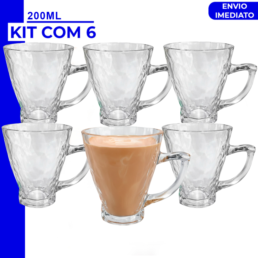 KIt jogo 6 Peças Canecas de vidro Capuccino Nespresso Coffee 200ml Chocolate Café Nespres