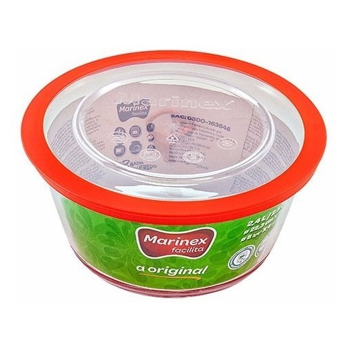 Tigela De Vidro pote Marinex Facilita Vermelho 2,4 Litros Redonda