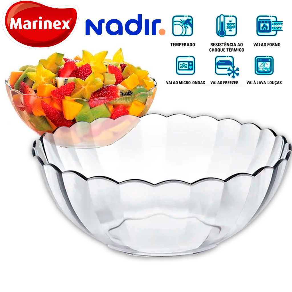 Tigela Bella Marinex de 2 Litros de Vidro Temperado Astral Gourmet Grande Sobremesas