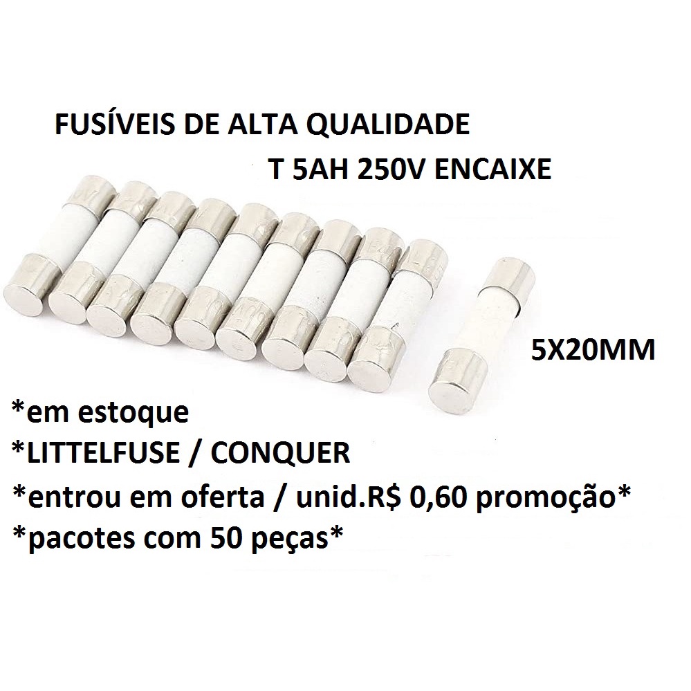 50 Pçs Fusível Cerâmico T 5ah 250v T5ah T5a T 5a Littelfuse / Conquer / Entrou Em Oferta
