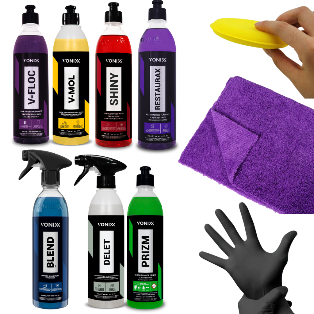 Kit Vonixx Completo para Estética Automotiva Cera Blend Sintra Fast Delet Restaurax Prizm V-Floc 500ml Vonixx