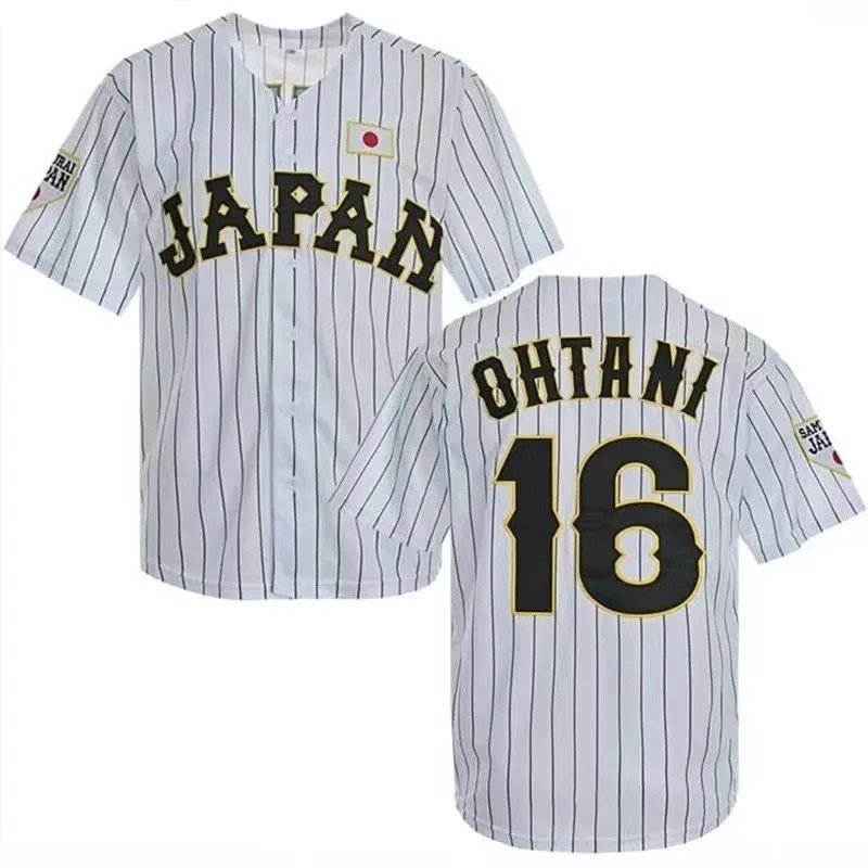 Baseball Jersey Japão 16 OHTANI Bordados De Malha Esportiva Ao Ar Livre Com Listras Brancas Camisetas Pretas Hip Hop High Street
