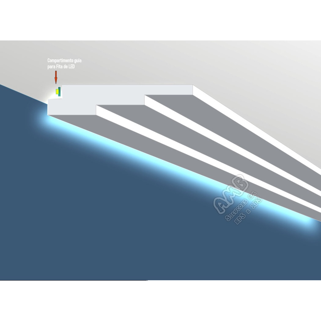 3m de Sanca 19cm EPS p/ Fita de LED iluminação indireta isopor rodateto moldura cantoneira ñ gesso