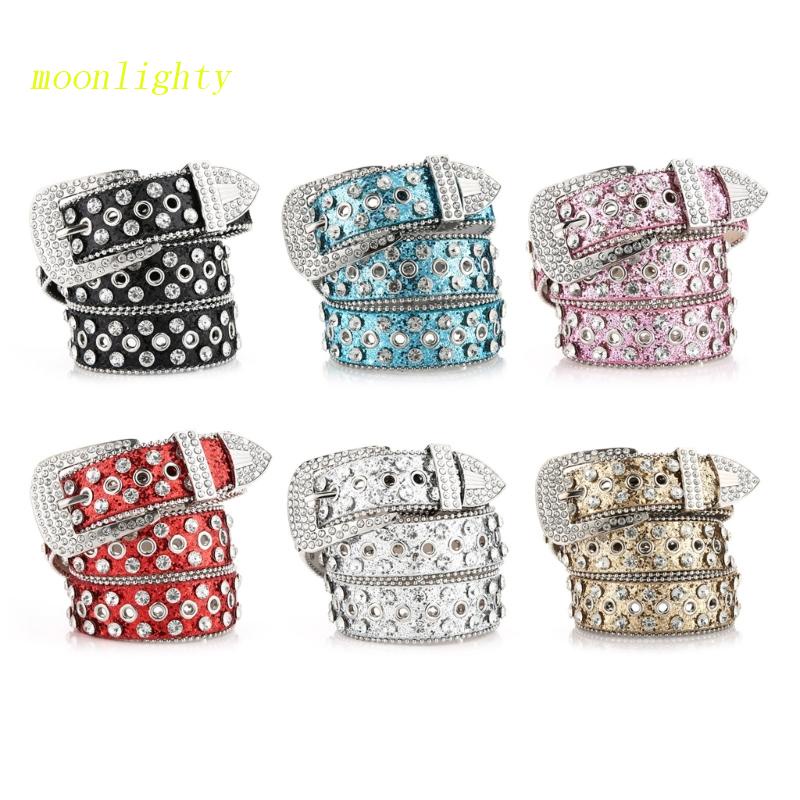 Y2K Cintos De Rhinestone Brilhante-Para Cinto De Jeans Cowboy Ocidental-Fivela De Metal PU Feminino-Couro Punk Ins Diamond Gótico Fashion Girls Rivet Waistband