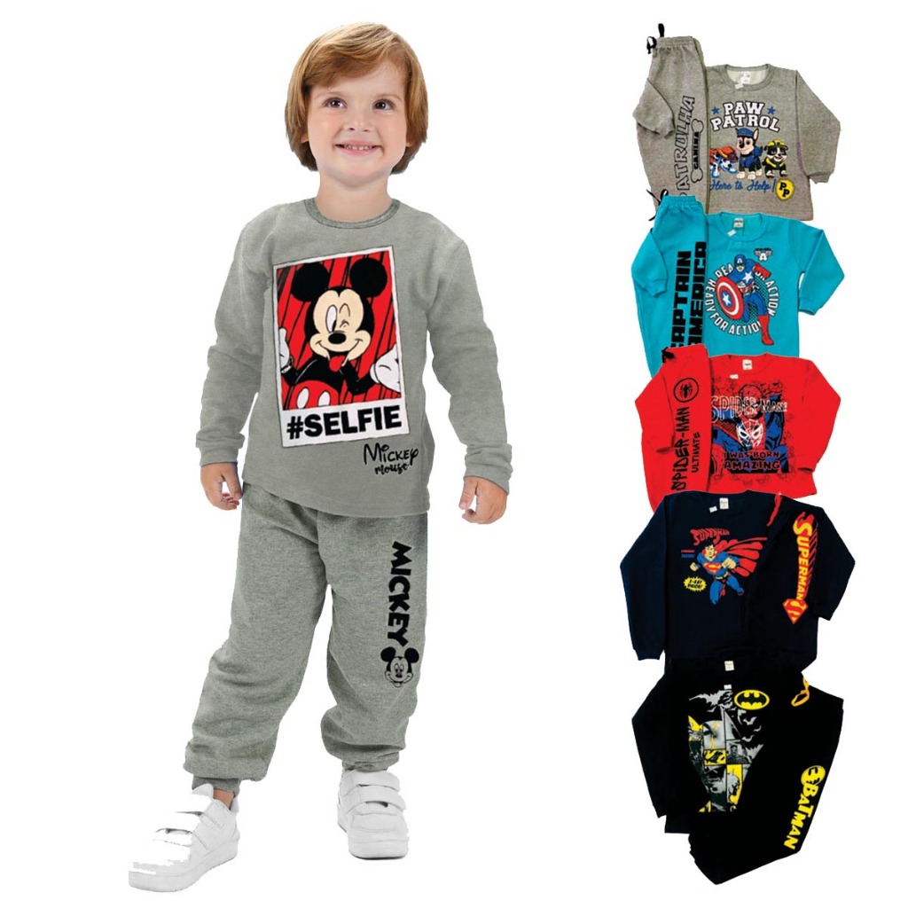 Kit 10 Peças Conjuntos Moletom Personagem Masculino Infantil Inverno 5 Casacos + 5 Calças Menino