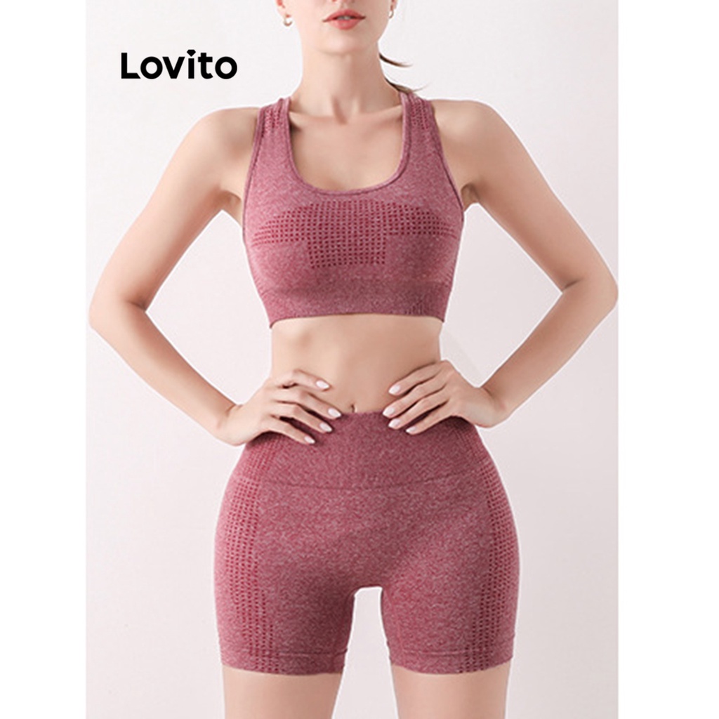 Lovito Conjunto de Roupas Esportivas com Modelagem para Realçar os Glúteos em Tecido Liso Casual para Mulheres LNA19078 (Cinza/Bordô/Preto)