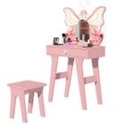 Penteadeira Infantil Princesa Com Espelho E Banquinho Camarim Para Meninas Organizador de Maquiagem Escrivaninha Suspensa Banqueta Prateleira Completa