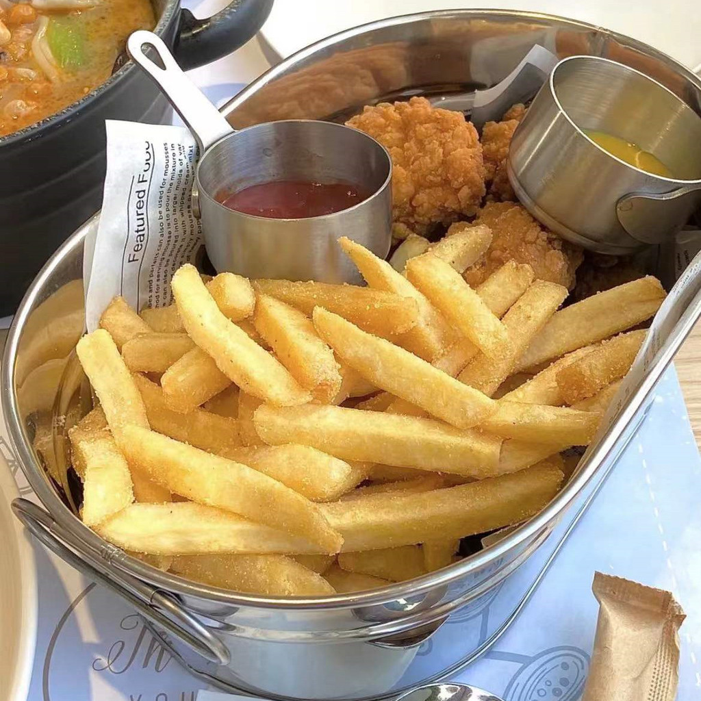 Batatas Fritas Barril Oval Barril Oval de Aço Inoxidável Barril de Orelha Dupla Cesta Criativa de Alimentos Fritos Cesta de Frango Frito Restaurante Ocidental Cesta de Frango Frito Mesa de Café