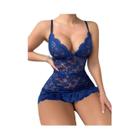 Conjunto De Lingerie Sexy Feminina Com Sutiã De Renda Sem Fundo E Vestido Baby Doll Com Decote - others