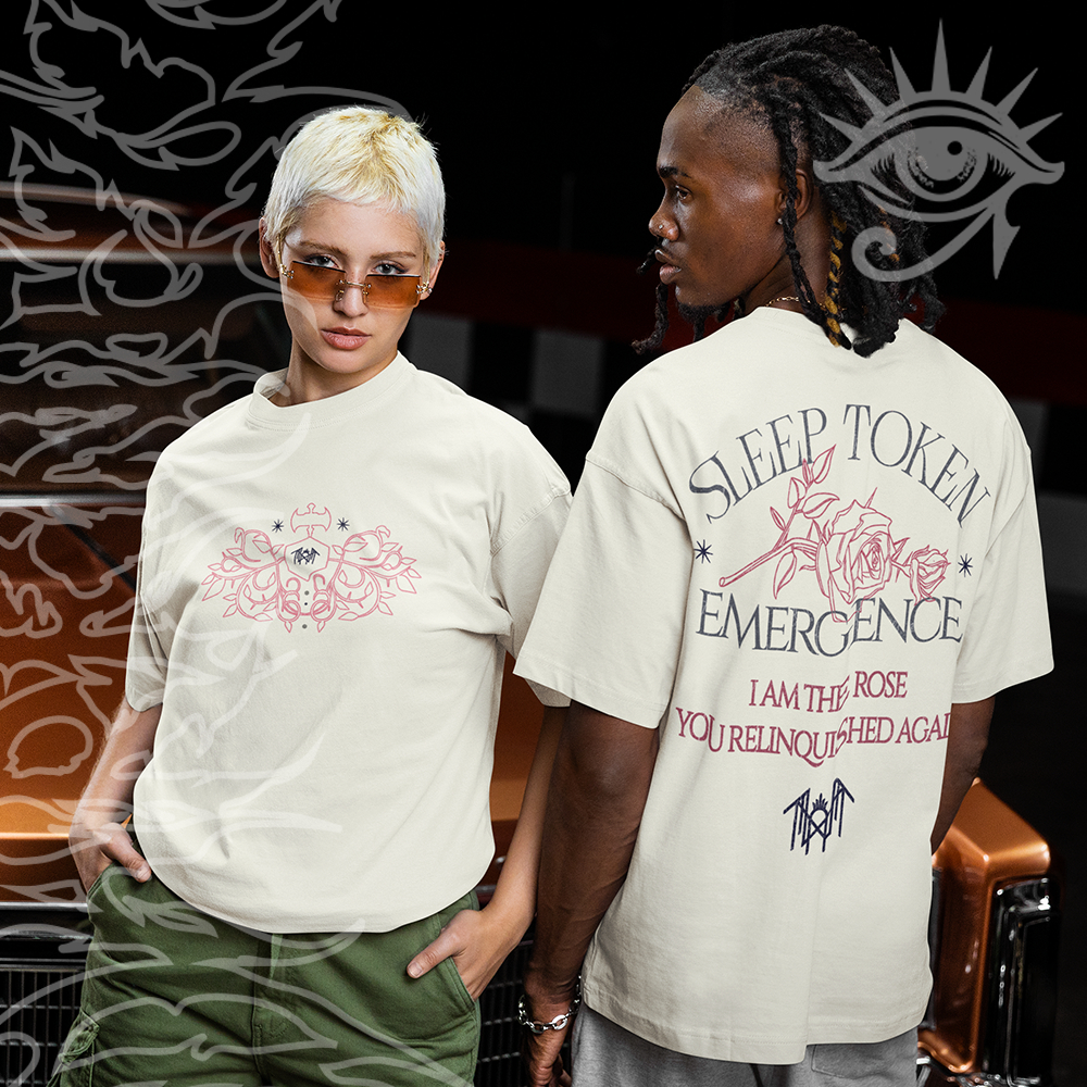 Camiseta Basica e OVERSIZED Sleep Token Emergence Rose Banda Rock Tour Unissex - Darknezz