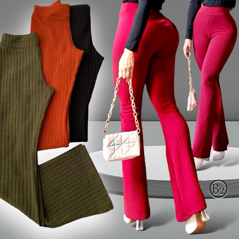 Calça Feminina Flare Tecido Bubble Estilosa Varias Cores Cintura Alta Elegante
