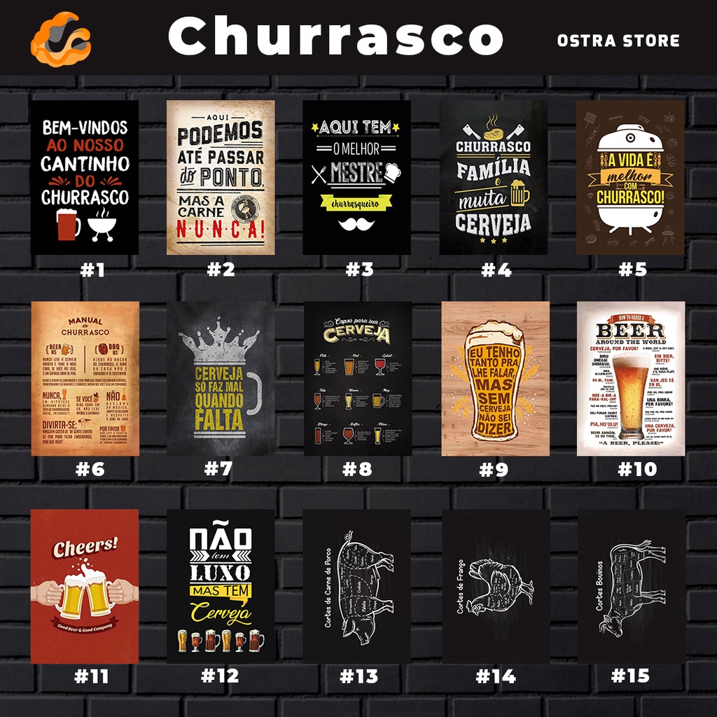 Churrasqueira 01 a 15 - Seriado - Placa decorativa MDF - 14x20 - Quadro parede & decoração - Presente - área de churrasco - cozinha - cerveja - casa