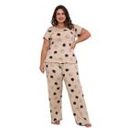 Pijama Calça Manga Curta Feminino Adulto Plus Size Moda Maior Presente Suede Calça e Blusa Manga Curta