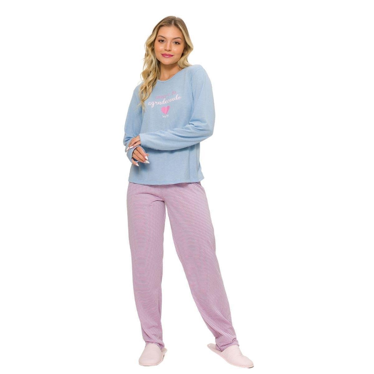 Pijama Adulto Feminino Manga Longa e Calça 3827