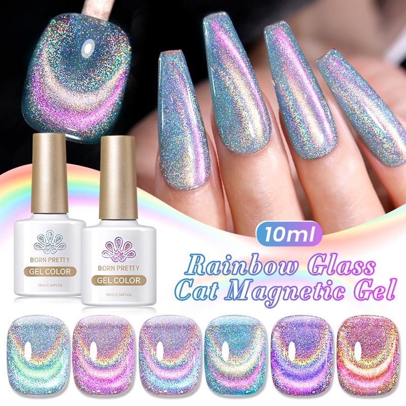 BORN PRETTY 10ML Rainbow Glass Cat Gel Magnético De Vidro Gato Arco-Íris Brilhante Brilho UV LED