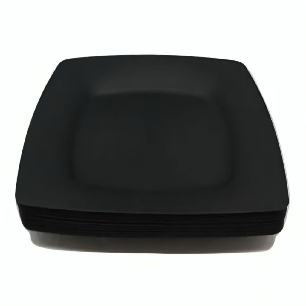 Kit 10 Pratos Quadrado Sobremesa Pretos Plástico Festas Eventos Aniversário