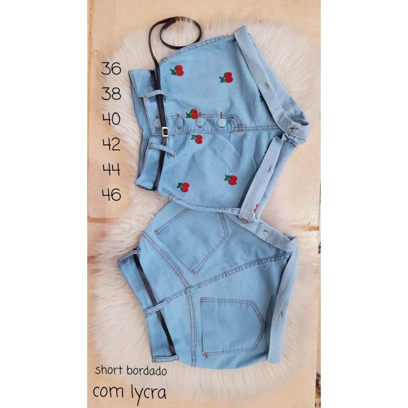 SHORT JEANS FEMININA LYCRA BORDADO CINTURA ALTA