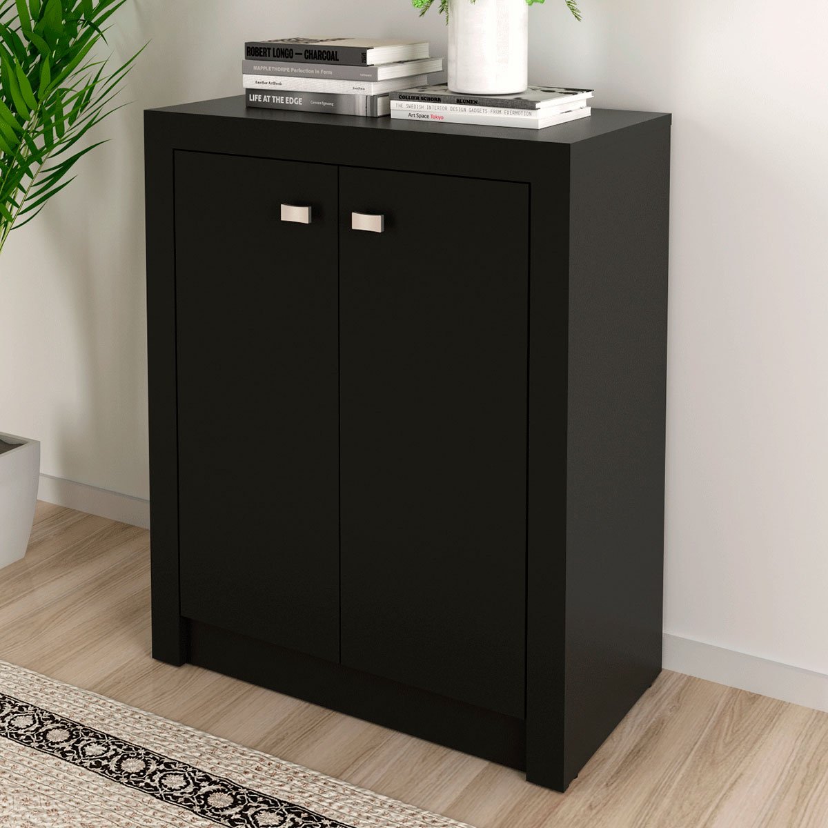 Armário para Escritório Baixo 2 Portas Preto Me4103 - Tecno Mobili