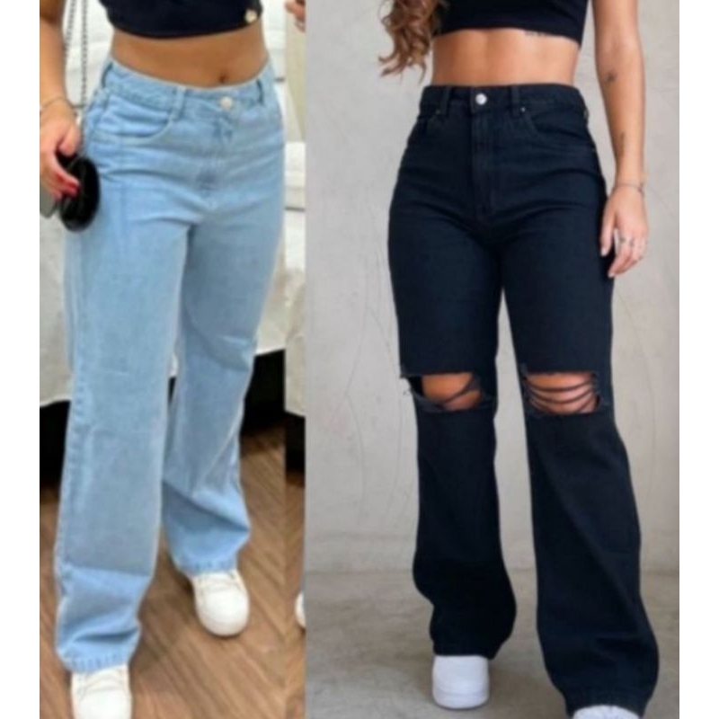 Wide Leg Jeans Pantalona Feminina Calça Cintura Alta