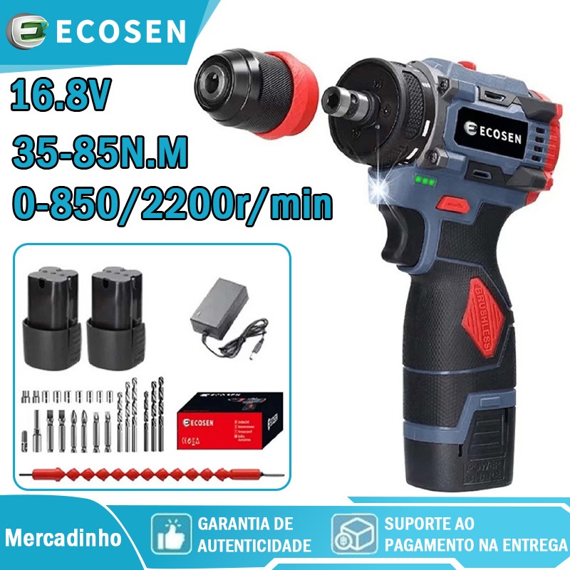 Furadeira Parafusadeira de impacto a bateria 16.8V/21V e acessórios -10MA - (110V220V) ECOSEN