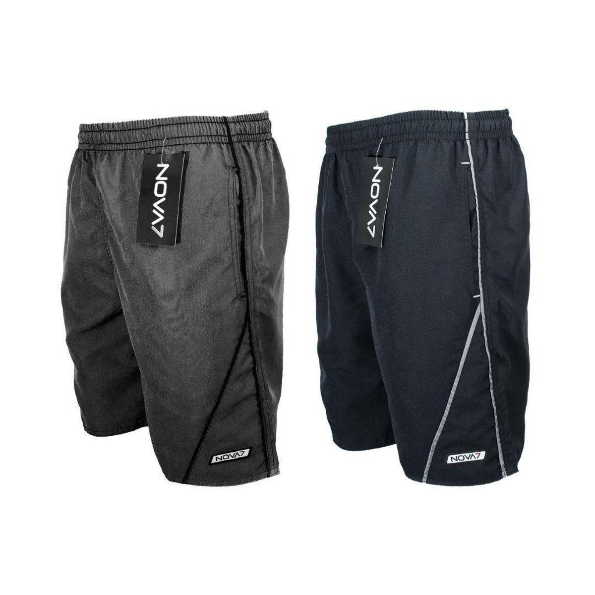 Kit 2 Short Tactel Leve Elástico Cordão Masculino 3 Bolsos Viés Listras Esportes Academia Corrida
