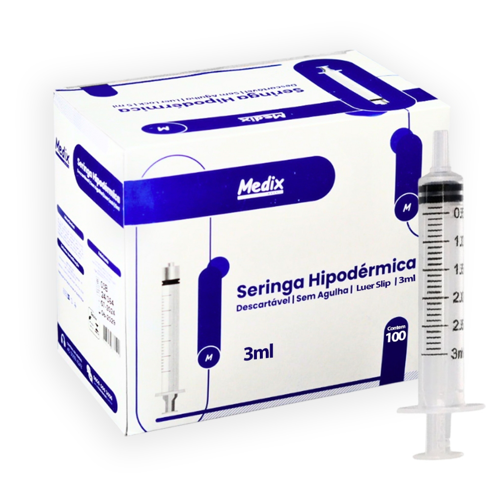 Seringa Descartável 3 ml S/agulha Luer Slip Medix Cx/100 unid