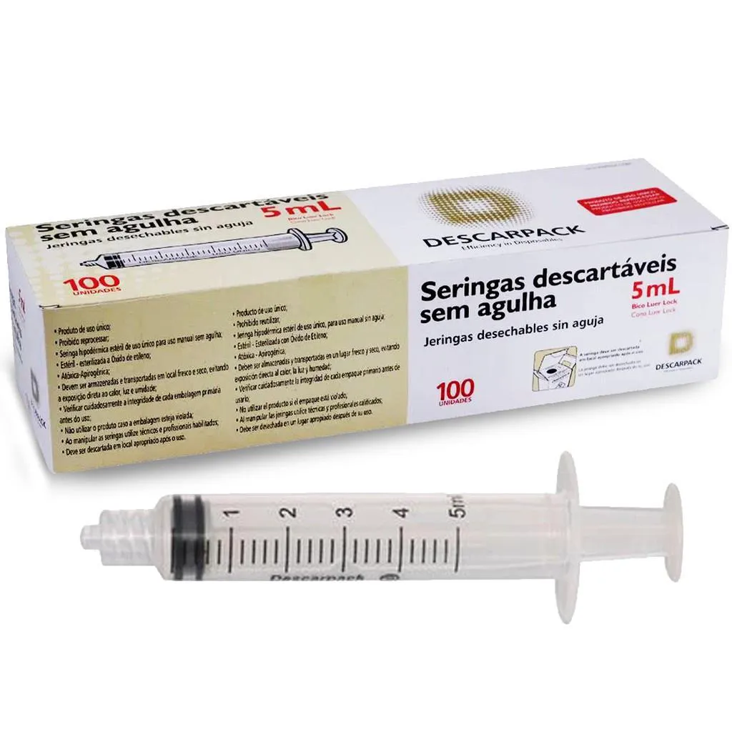Seringa 05Ml S/ Ag. Luer Lock C/ Rosca Caixa com 100 Unidades Descarpack