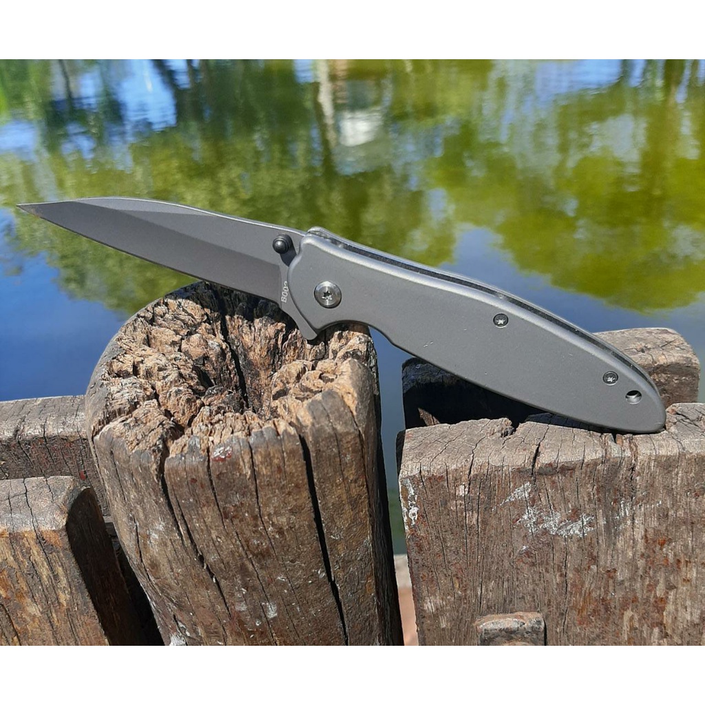 Canivete Semi-automatico Com Trava com Clip Liner Lock Com Mola Caveira Stonewash