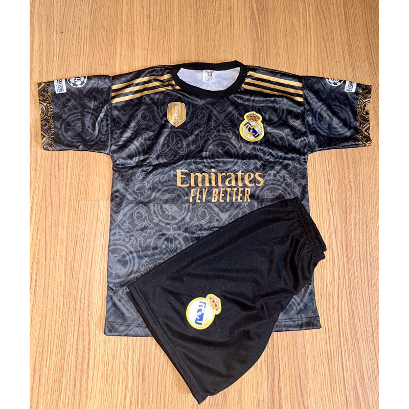 Kit Conjunto infantil juvenil futebol Real Madrid 2024 Vini Jr. Tamanho do 06 ao 14