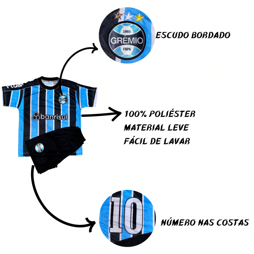 Kit Conjunto infantil juvenil futebol Grêmio Tamanho do 02 ao 14