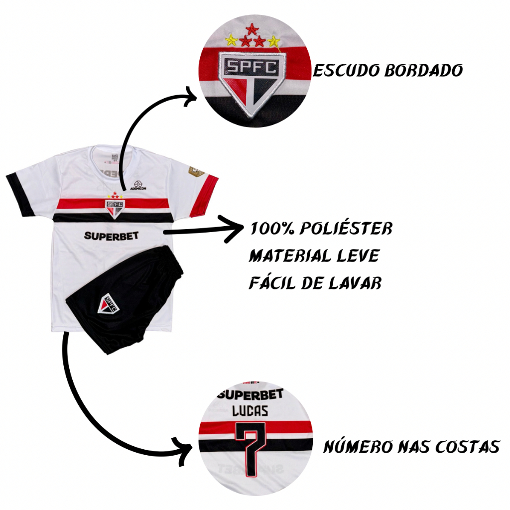 kit conjunto infantil juvenil futebol São Paulo Tamanho do 02 ao 14