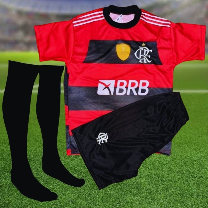 Kit Imperdível Conjunto de Time Futebol Infantil Juvenil com Meião do FLAMENGO 2024 ENVIO IMEDIATO