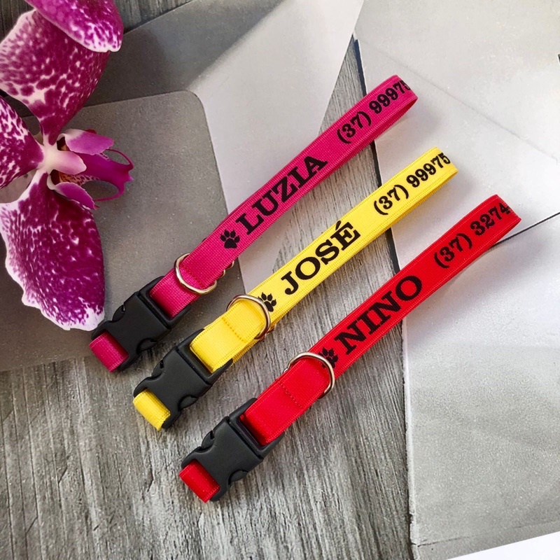 Coleira para Cachorro Personalizada com Identificação Nome e Telefone
