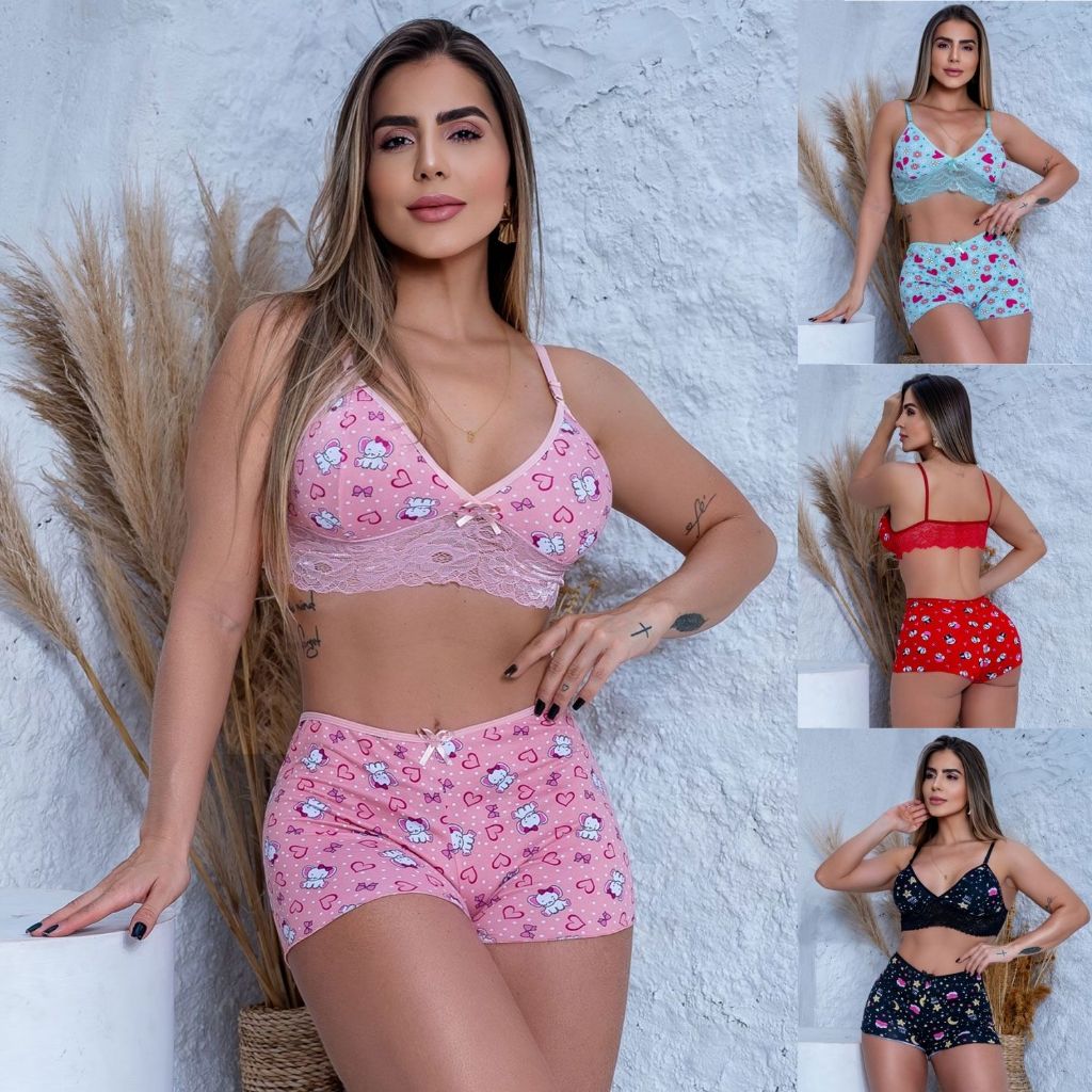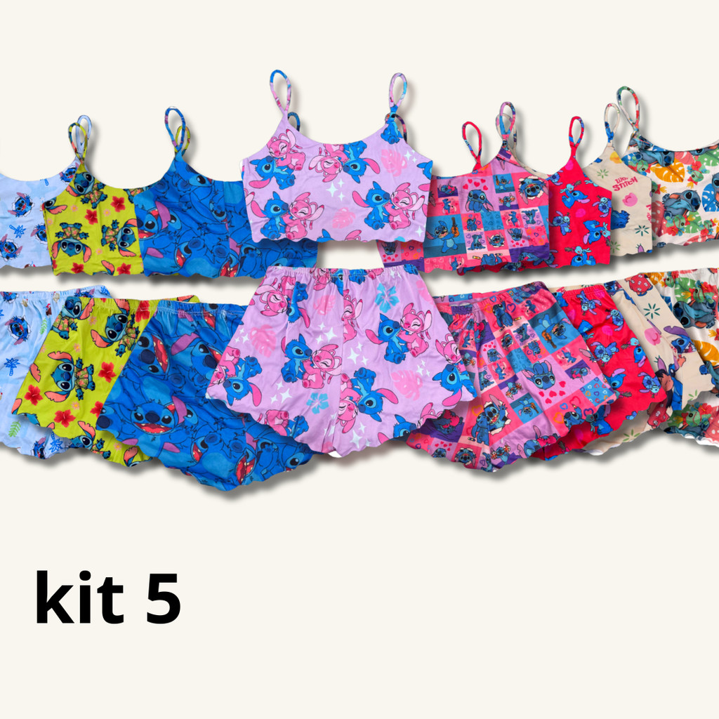 Kit 5 Pijama feminino top doll baby doll cropped alcinha verão revenda Stitch