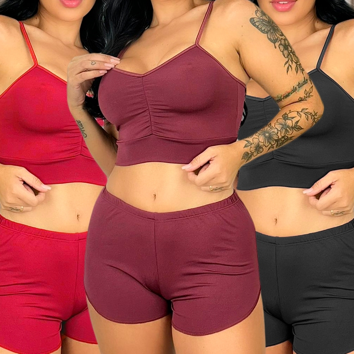 Kit 3 Pijama Feminino Conjunto Short Doll Top sem Bojo Lully | 834