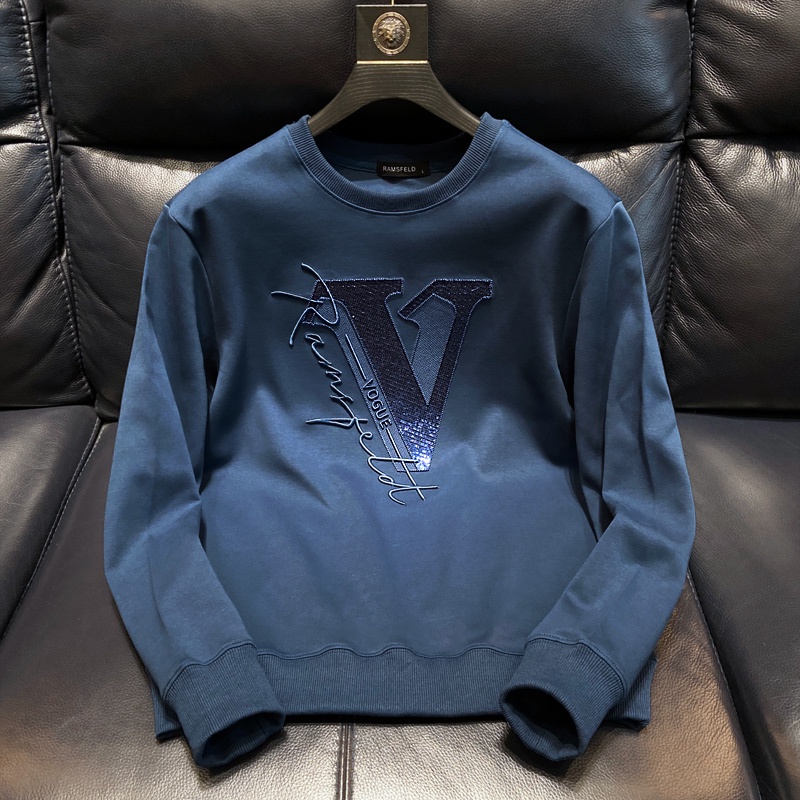Moletom Masculino Estilo Britânico Com Gola Redonda E Bordado Tridimensional/Camisa Longa De Luxo