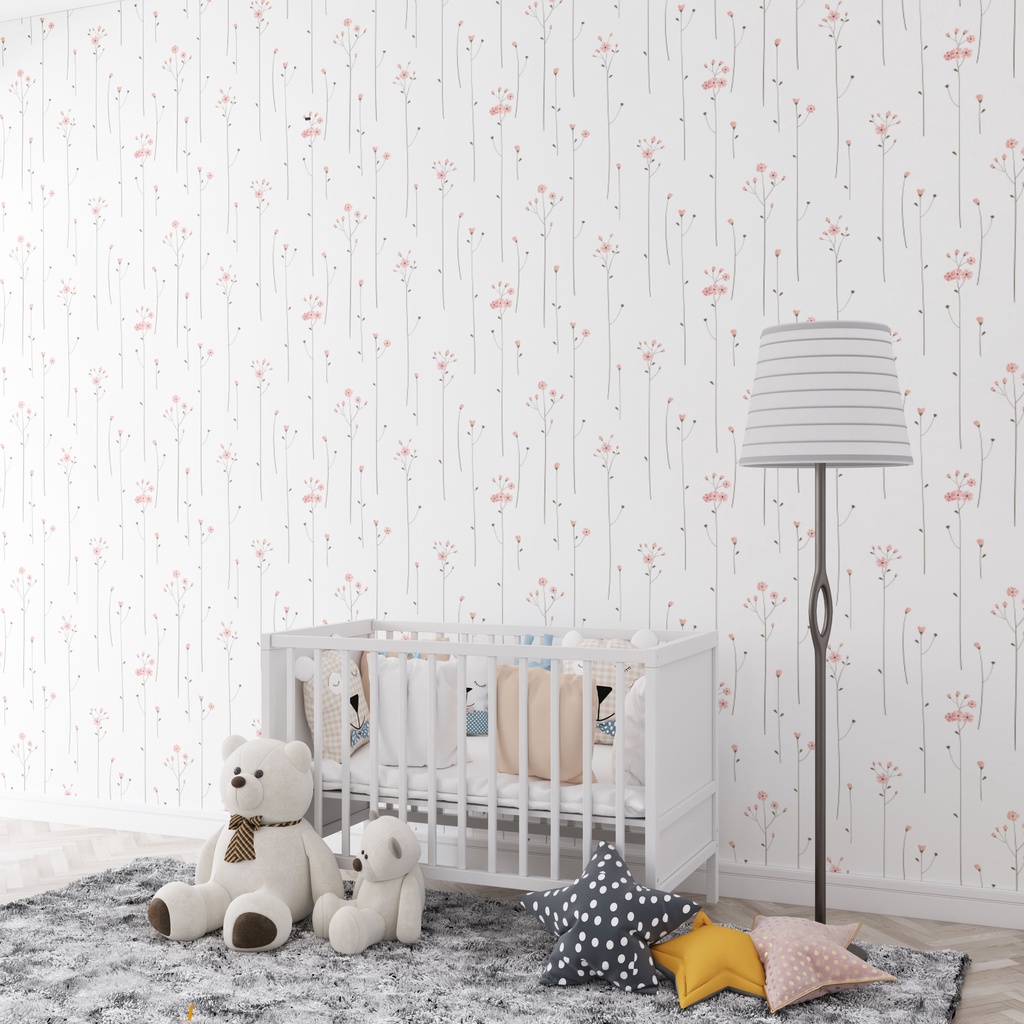 Papel de Parede Infantil Galhos e Flores Jardim Quarto de Bebê e Criança m²