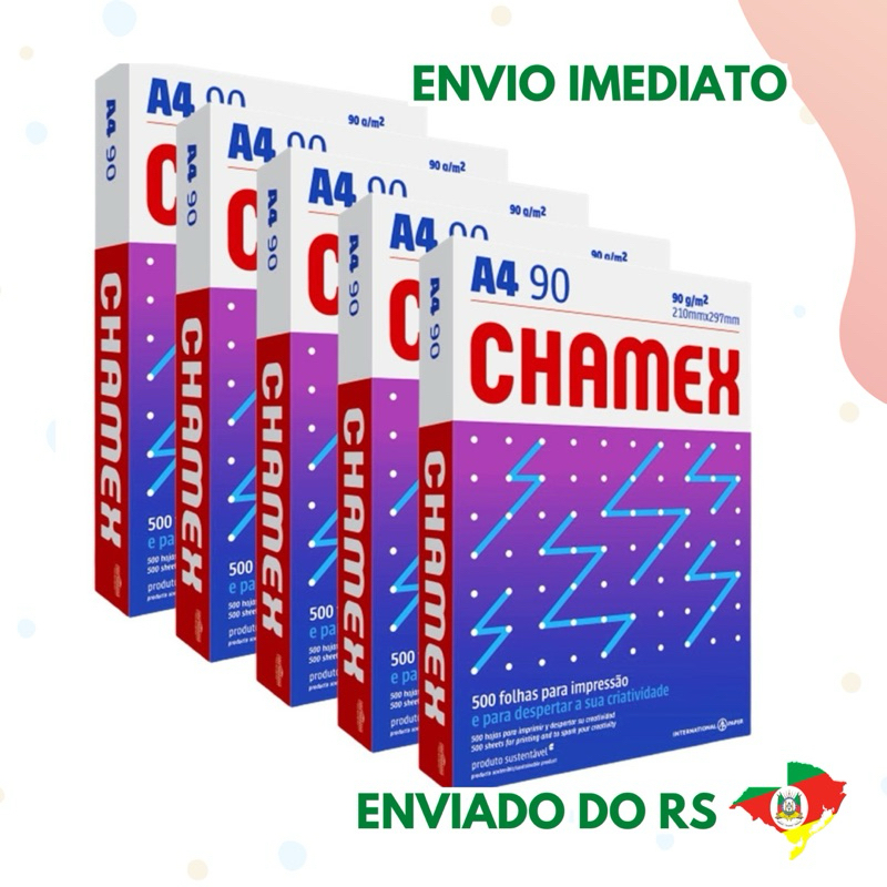 Papel Sulfite A4 75grs 210x297 Resma com 500 Folhas Chamex Qualidade Premium Branco