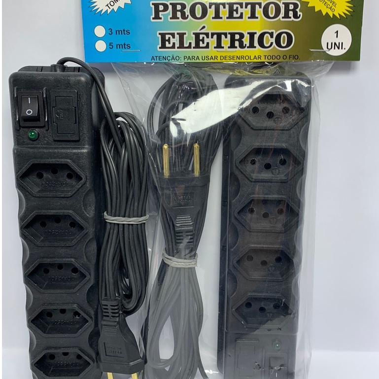 Filtro De Linha Régua Elétrica Extensão Elétrica 5 Tomadas 3m e 5m