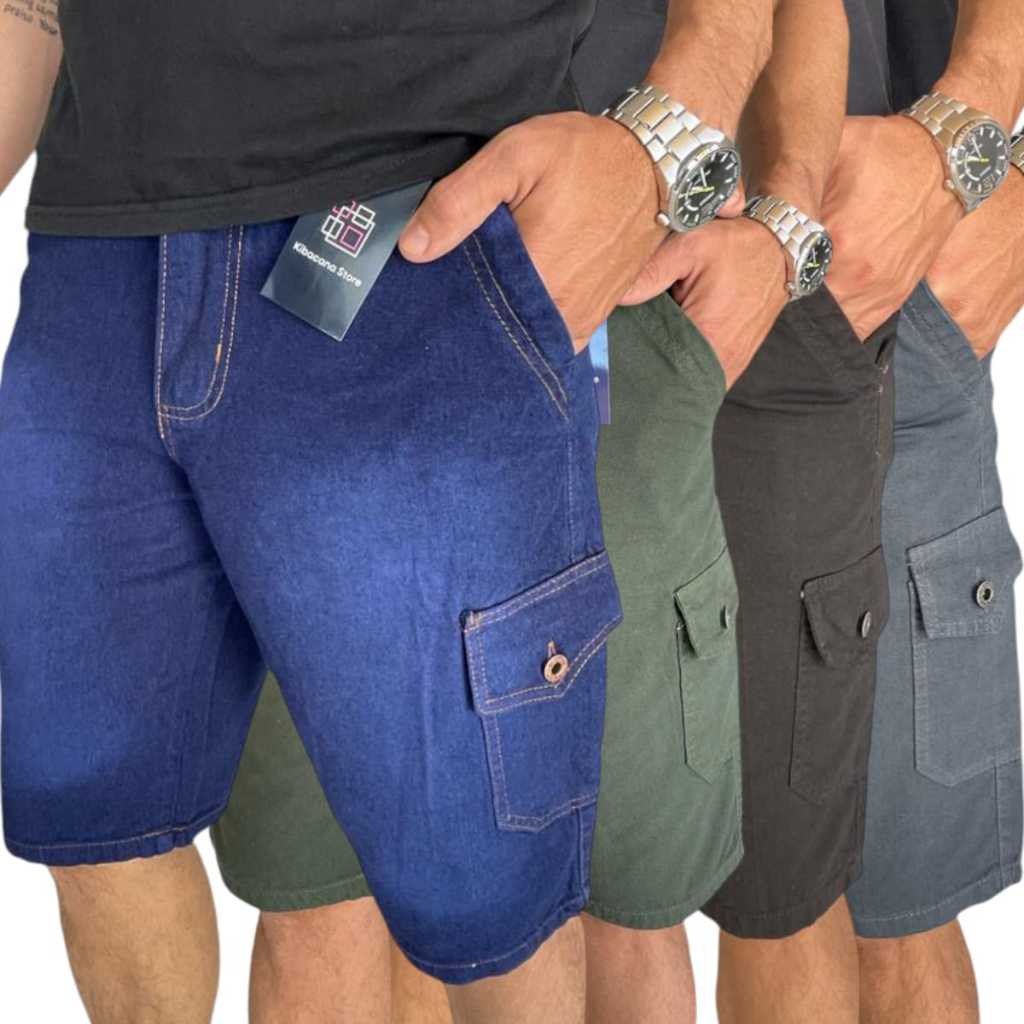 kit 3 Bermuda Masculina Cargo Adulto Jeans E Brim 6 Bolsos