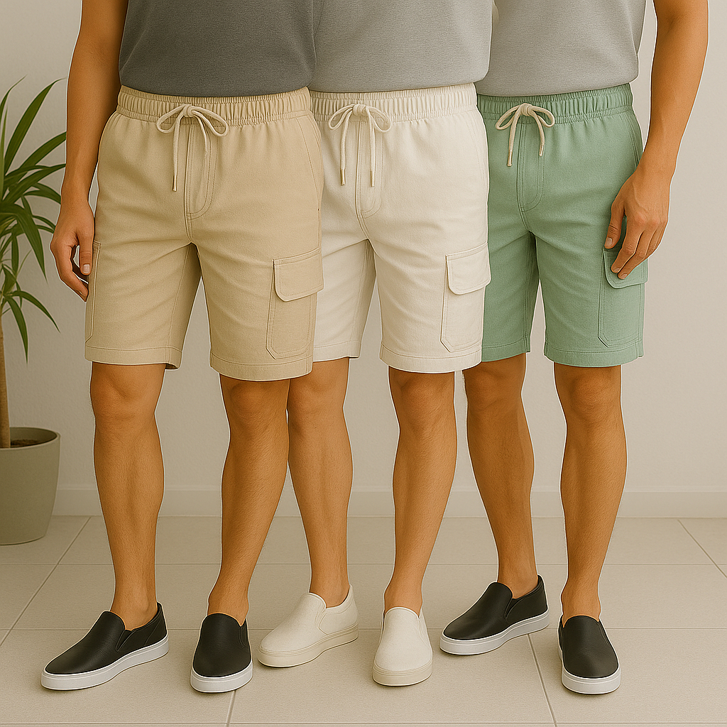 Kit 3 Bermuda Short Cargo Masculino Casual com Bolsos Laterais Masculina Diversas Cores Street Curto