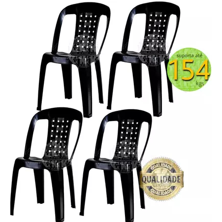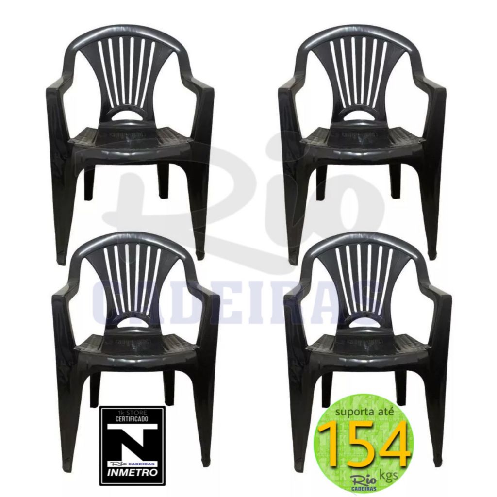 Kit 4 Cadeiras Plástica Poltrona Preta Restaurante Igreja Lanchonete bar jardim