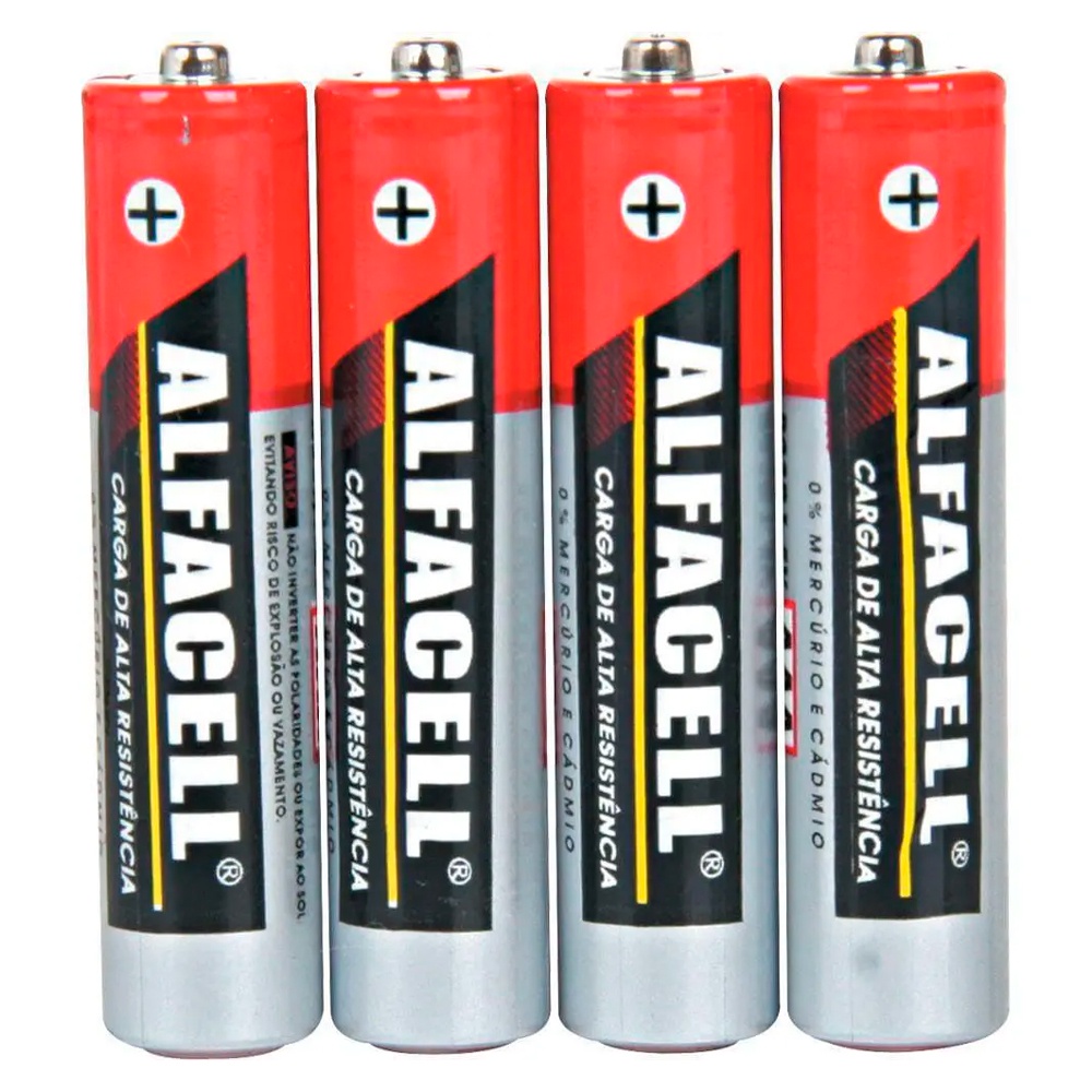 Pilhas Palito Bateria AAA Alta Resistência 1,5v Kit 4 Unidades Pilha Comum Tamanho Pequeno Alfacell Calculadora Controle Relógio